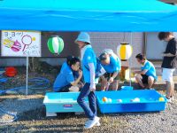 8月24日(日)午後5時より台渡里公民館に於いて、台三区「こども夏まつり」が開催されました。台三区みんなの会によって年間10回行っている資源ごみ回収の水戸市からの報奨金を原資に、毎年この時期に開催しております。本年も120名ほどの子どもとその家族が参加してくれましたが、夏の行事として定着したことで各ゲームコーナーで用意した駄菓子や風船を手に喜ぶ笑顔でいっぱいとなりました。こどもたちのために用意された焼きそばや綿あめなどを食べながら、夕方の7時までの2時間を十分に楽しんでもらえたようです。